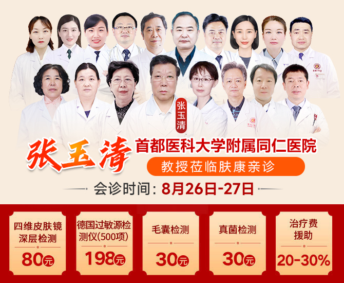 本周末专家会诊说明:8月26日至27日,郑州肤康中医皮肤病研究院,特邀首都医科大学附属同仁医院【张玉清】教授联合会诊,会诊期间,专家号每日仅限20名,从速预约,约满即止。