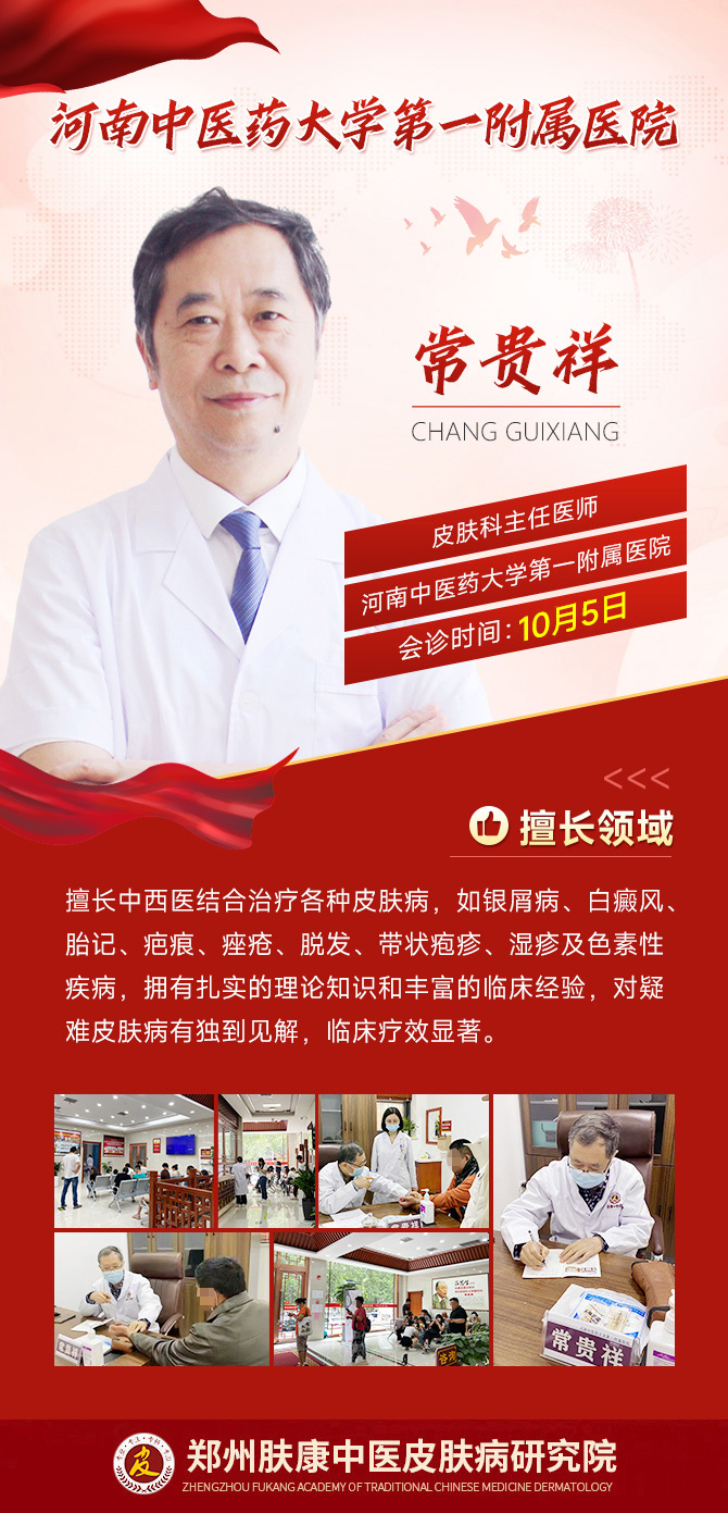 特邀常贵祥教授、高永军教授于10月3-5日莅临郑州肤康会诊。