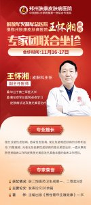 11月16日-17日(本周末),郑州肤康皮肤病医院为帮助河南疑难皮肤病患者早日实现健康无恙 解决“看病难、看病贵、看专家更贵”的问题特邀火箭军总医院王怀湘主任莅临肤康进行联合会诊。