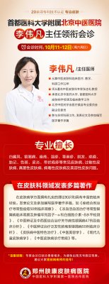 「倒计时1天」10月11日至12日,郑州肤康医院特邀北京专家李伟凡教授会诊!